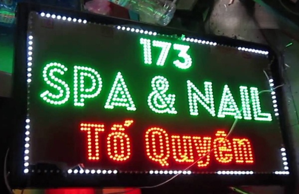 Biển LED Vẫy Spa sử dụng nền Mica Tím lãng mạn, kết hợp với các bóng LED tạo hiệu ứng Sóng Nước hoặc gợn sóng nhẹ nhàng. Hiệu ứng này rất phù hợp với ngành spa, tạo cảm giác thư giãn, thu hút khách hàng từ xa mà vẫn giữ được sự tinh tế, sang trọng.